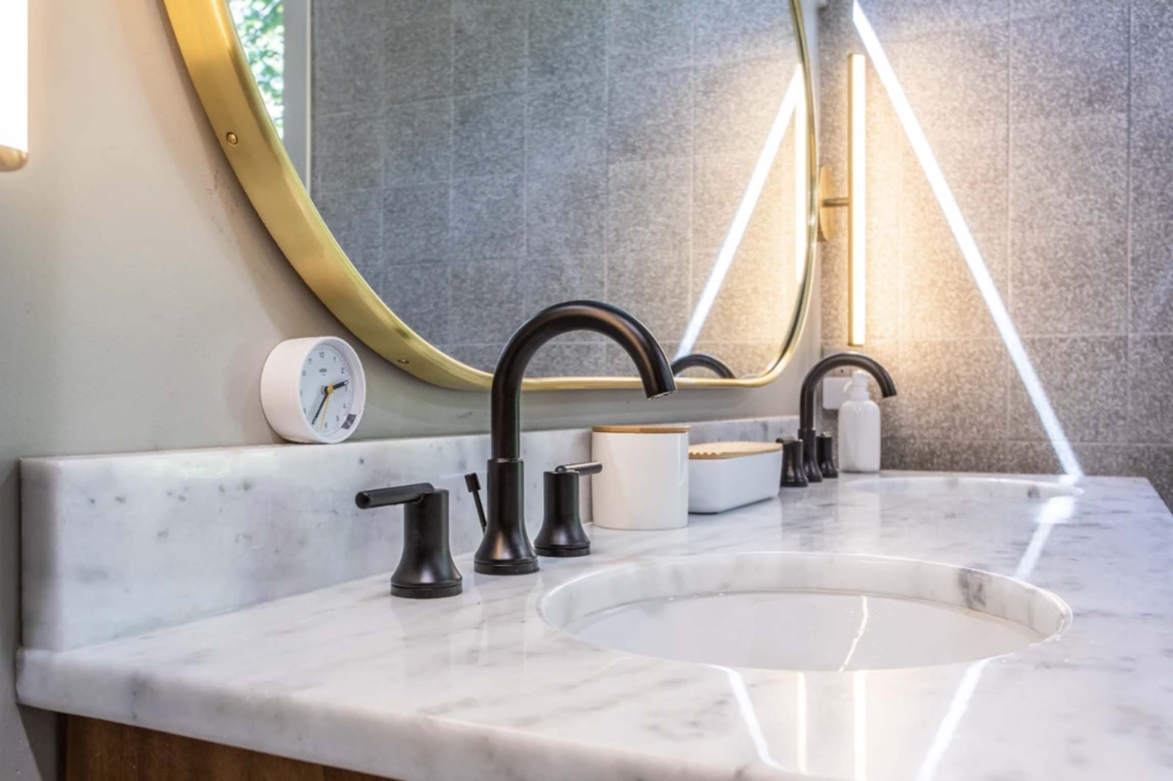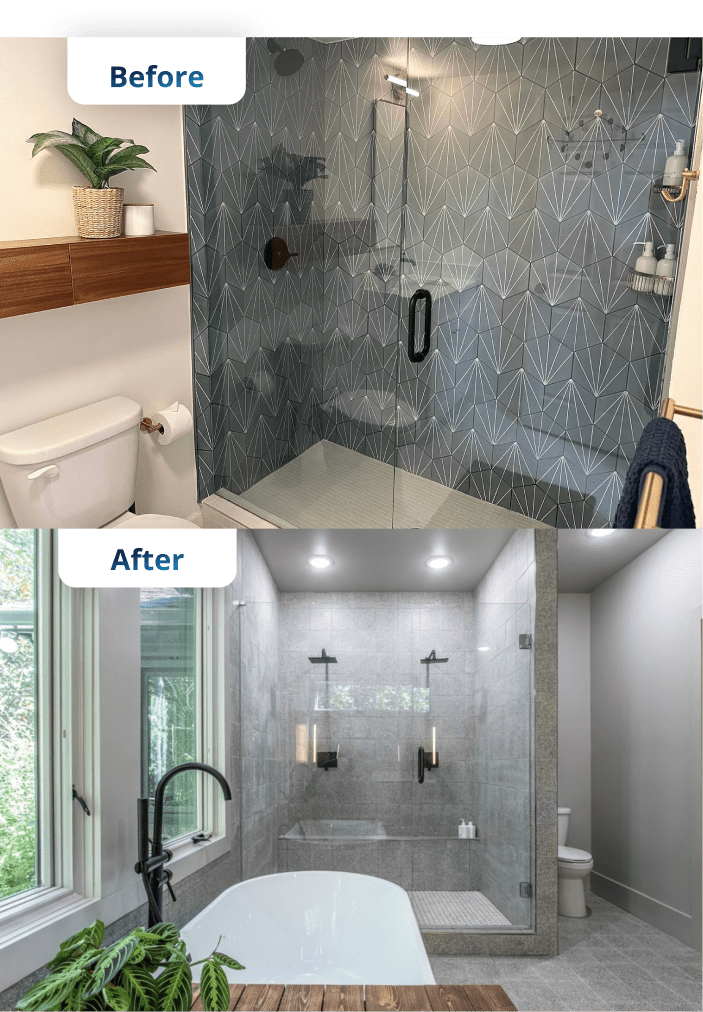 The homeowners of this beautiful 1-acre lot that includes a 335-foot border on Fernbank Forest in Dekalb County hired Frayer & Judge for this major renovation. The scope of work included a rear addition to the existing single-story structure to include the addition of a new primary suite including bedroom, walk in closet, and bathroom. The kitchen also got a full renovation with a clean modern style. Renovations on the main floor and in the basement included bathrooms and kitchenet. On the exterior, our team tore down the front porch, rebuilt it with a new roof and columns, and replaced the front door. We expanded the rear parking pad and added a new septic tank and drain fields.