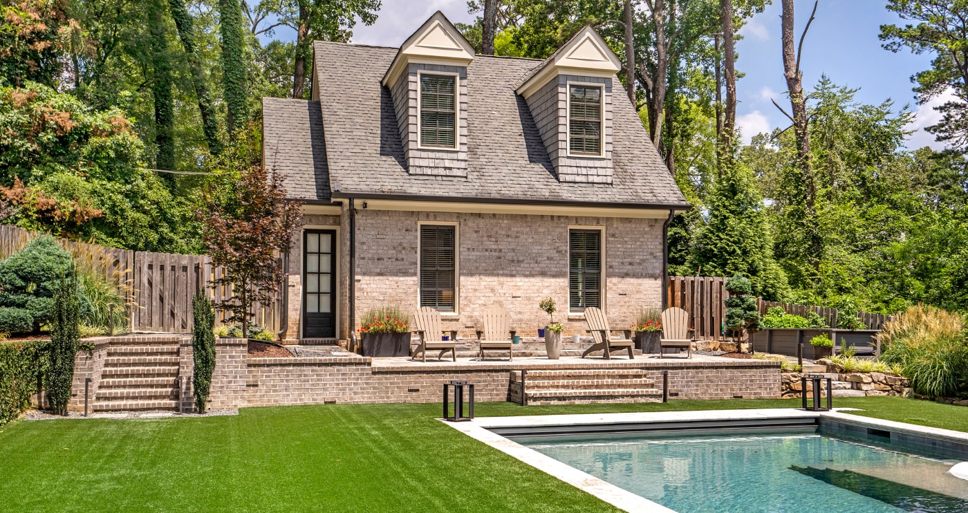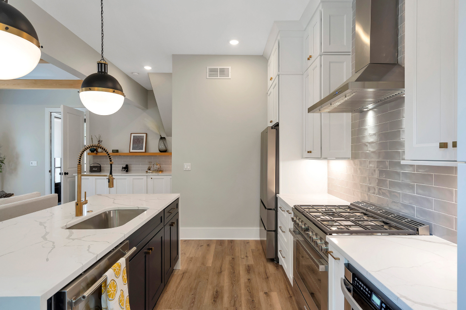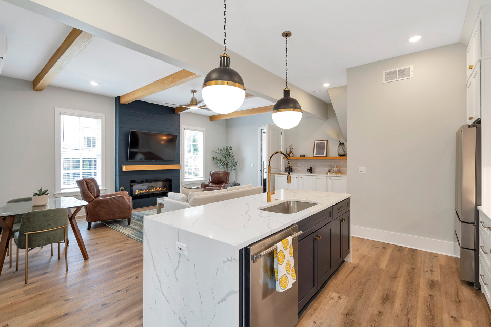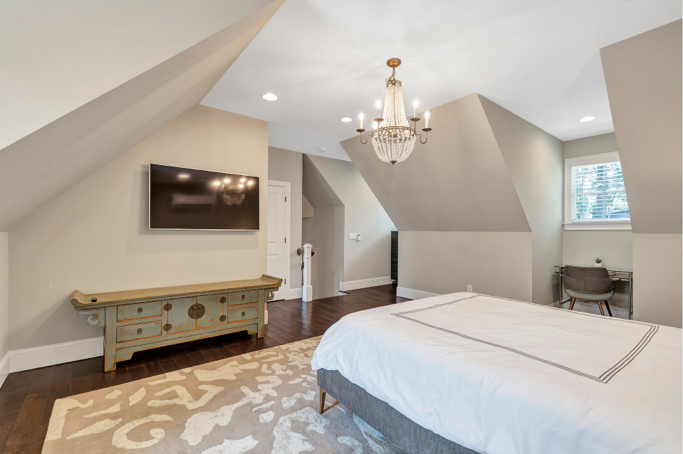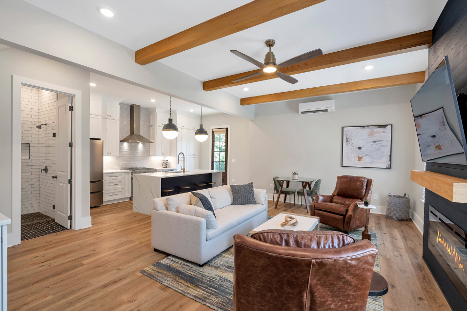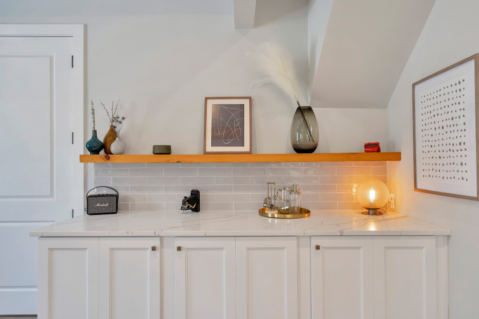A modern Carriage House refers to freestanding (or sometimes attached) structures with lofted living space on the floor above. Our team brought this client’s dreams to life by turning their existing detached garage into a 1,000 sq ft Carriage House with living room, kitchen, full bathroom, and hidden laundry on the first floor and beautiful large bedroom with ensuite bathroom above.