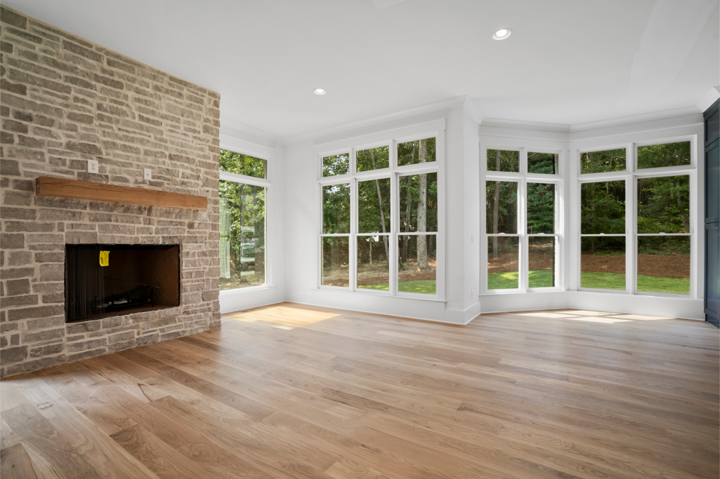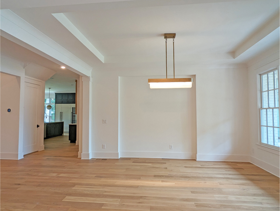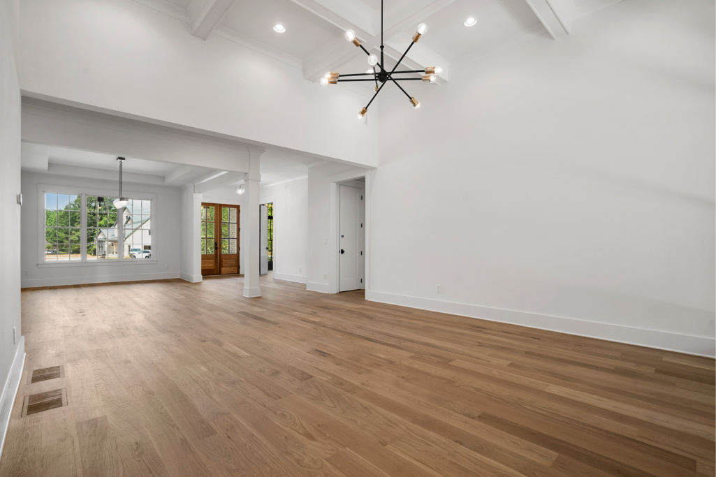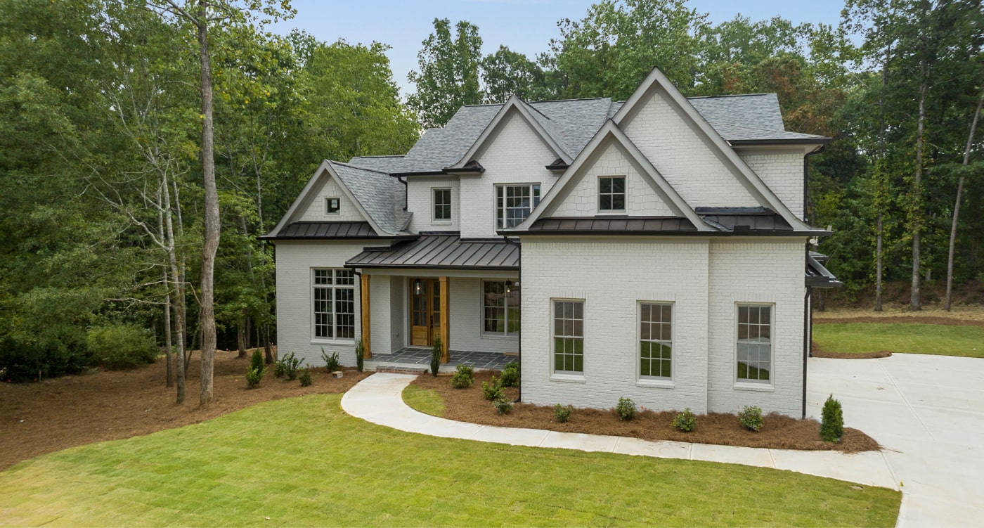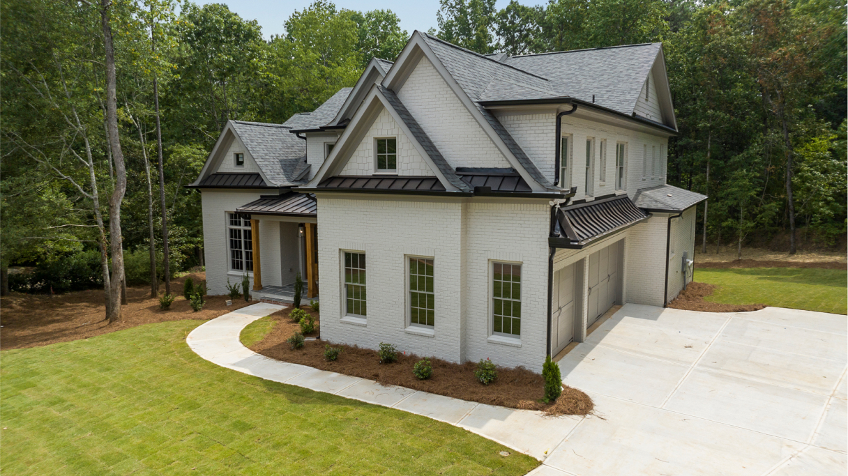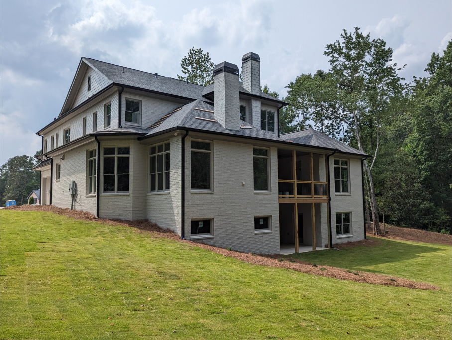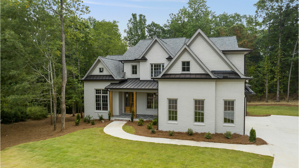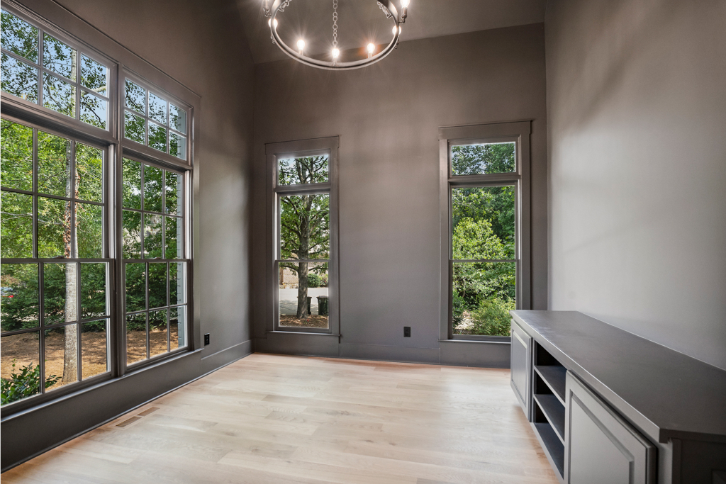 Excellent craftsmanship and design are forefront in this beautiful home built in the award-winning Oconee County school district! This magnificent home features 5 bedrooms and 5 ½ baths on a private 1.17-acre lot in a cul-de-sac of the Moss Creek neighborhood. The stunning exterior brick is painted with Sherwin Williams’ gorgeous color, Skyline Steel and the window sashes are painted with SW’s Acier. The home features white oak floors throughout the main level. As you enter the charming front porch and welcoming front double doorway into the 2-story foyer, an expansive dining room is to the right and a private monochrome library/office with built in cabinetry is to the left. Continuing forward, enter the grand room with substantial coffered ceiling and lighted stairs to the 2nd floor. To the right of the grand room is the gorgeous gourmet kitchen and keeping room boasting a brick fireplace and an abundance of floor to ceiling windows offering natural light with glorious views.