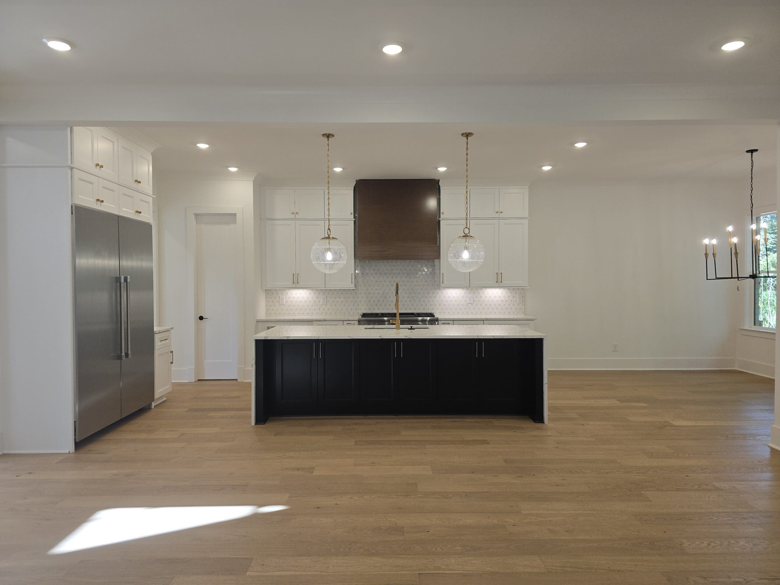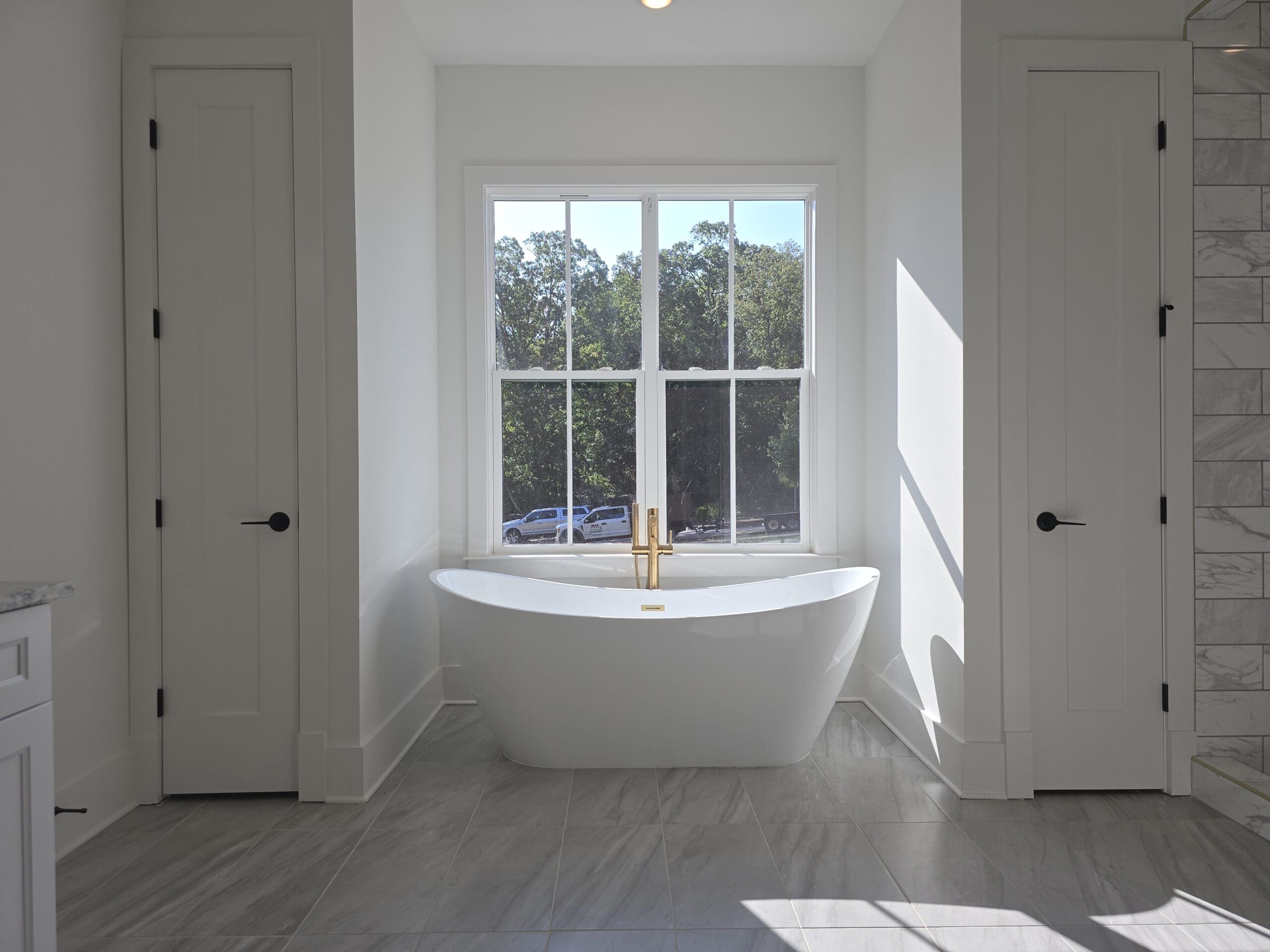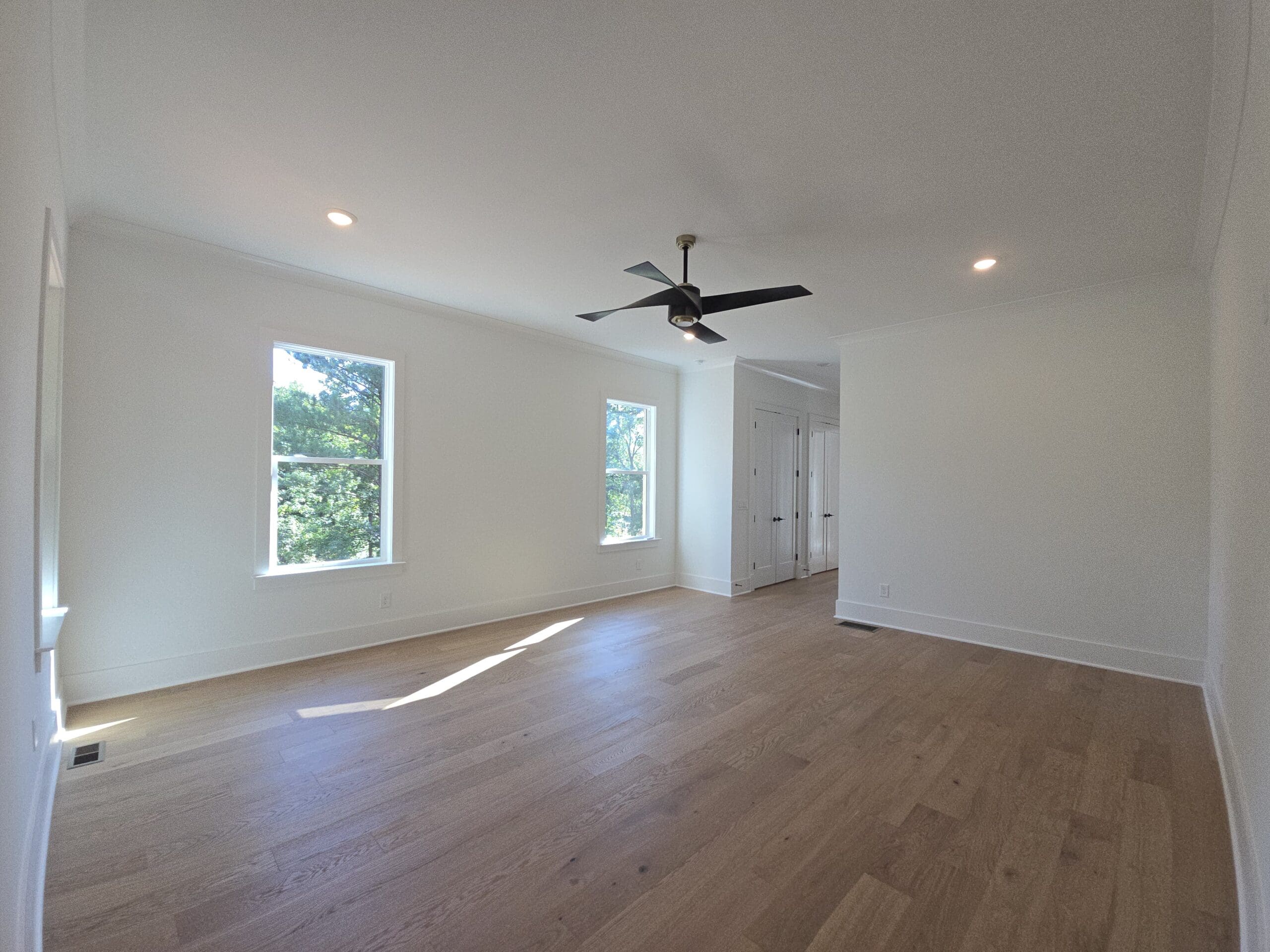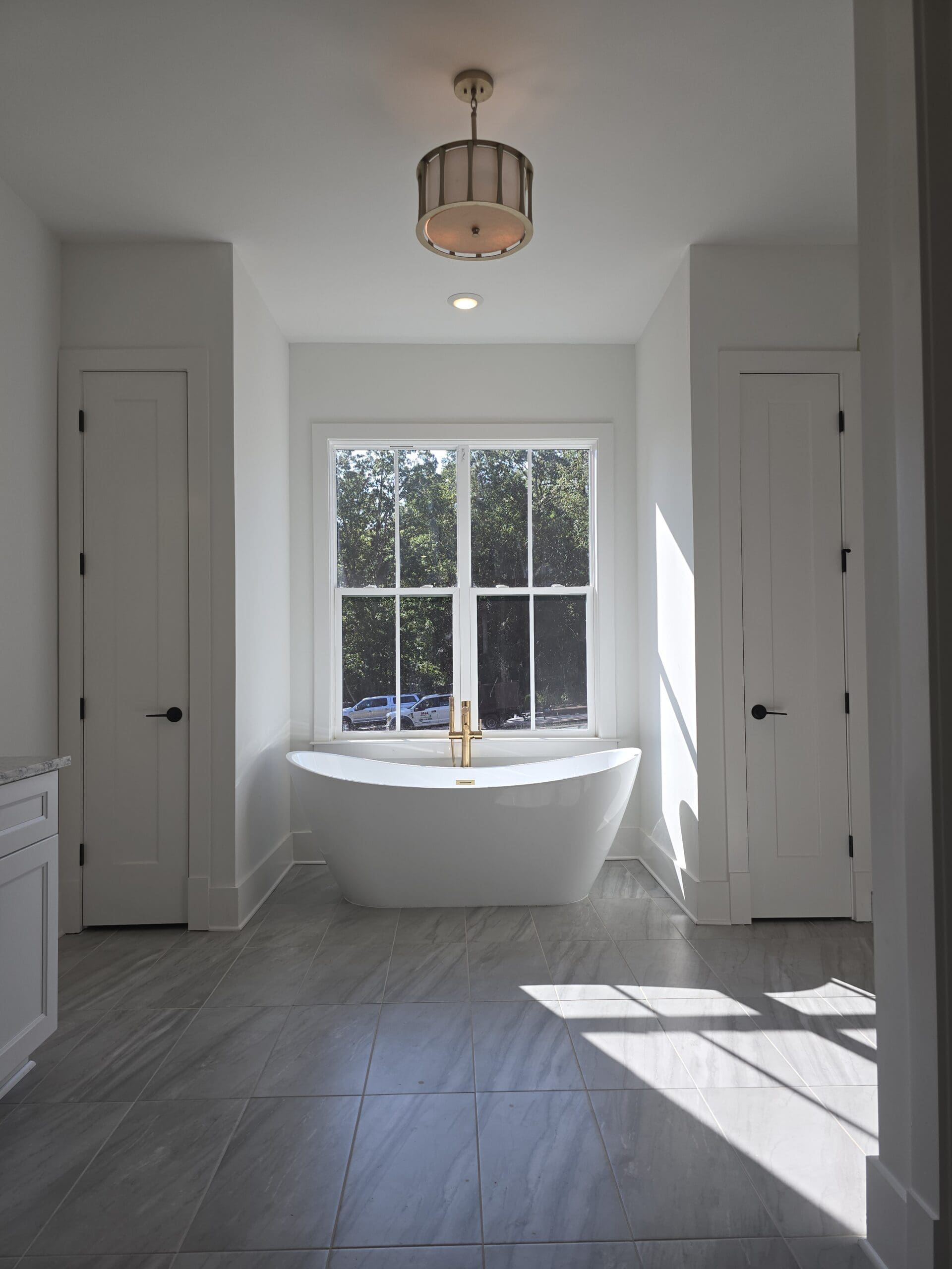 The 2nd home we completed in Spartan Manor is a new twist on a previous build, and the results are exceptional. This beautiful 4,206 square foot painted brick home sits on a 1.51-acre lot and is designed to impress, blending the latest design trends with thoughtful, luxurious finishes. A grand foyer leads into a spacious living room with a 10’ coffered ceiling, built in bookcases, and a high-end, modern cast stone fireplace. The large open layout of the kitchen and breakfast nook captivates and comforts with luxury and light. Whether an avid entertainer or home cooking enthusiast, this kitchen provides the perfect workspace featuring Thermador stainless steel appliances, including a 48” gas range, side-by-sde 30” refrigerator & 30” freezer, dishwasher, microdrawer, a huge walk-in pantry, a 9-foot island with outside cabinets, large sink & touchless faucet. Speaking of cabinets, narrow spice and pan pullout cabinets are provided on either side of the oven for extra convenience. This kitchen is a joy with plenty of natural light, modern pendants, can lighting, and under cabinet lighting. Large glass sliding doors provide easy access to the private covered back deck. The separate dining room is the prefect pl place for special mealtime gatherings. Continuing on the main floor, the primary suite is a luxurious retreat featuring the ideal amount of natural light and custom closets.  Get ready to conquer the day or enjoy downtime as you step into a huge 5’ x 10’ x 10’ beautifully tiled shower with gold double shower head and handheld system, relax in the 72” modern freestanding soaking tub, and look your best at the spacious double vanity. On the opposite side of the main floor comes an additional office or guest room with access to a full bath, complete with tiled shower. Entering through the 3-car garage and just off the kitchen an extra large mud room and separate spacious laundry room provide conveniences for daily living.