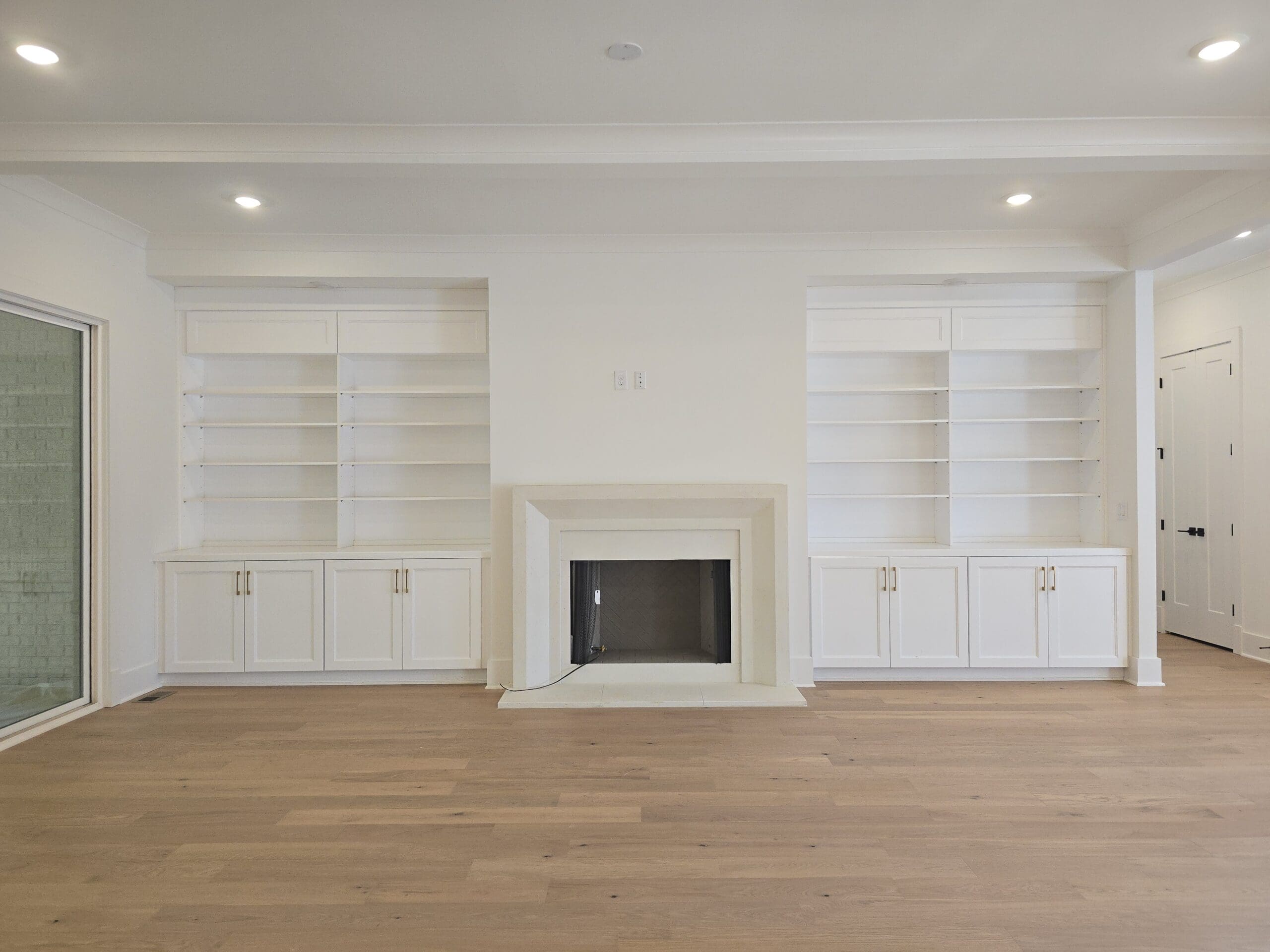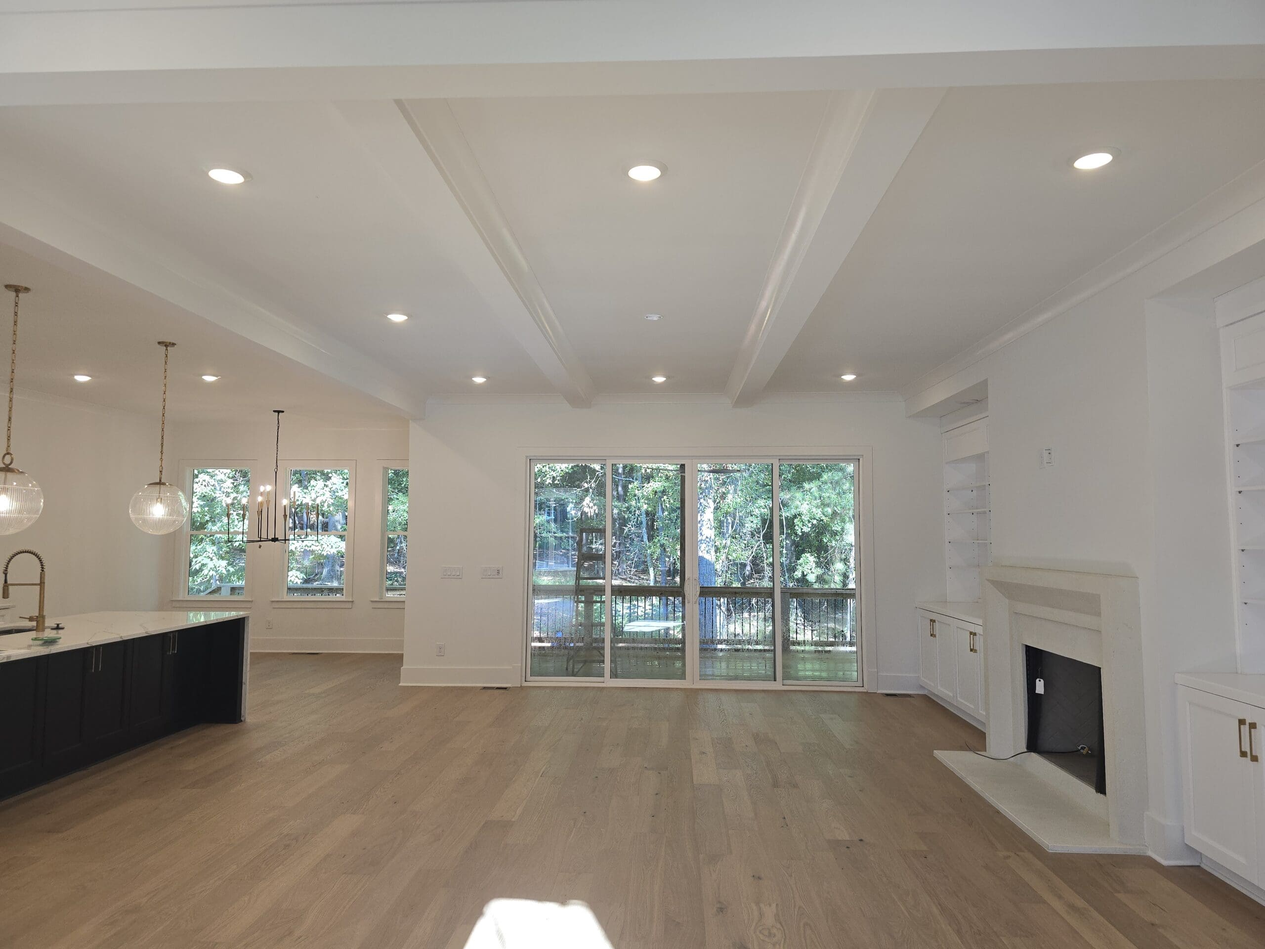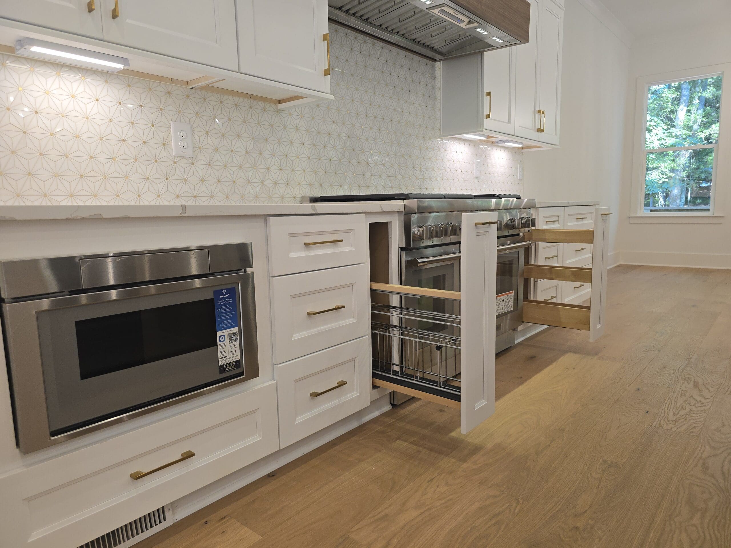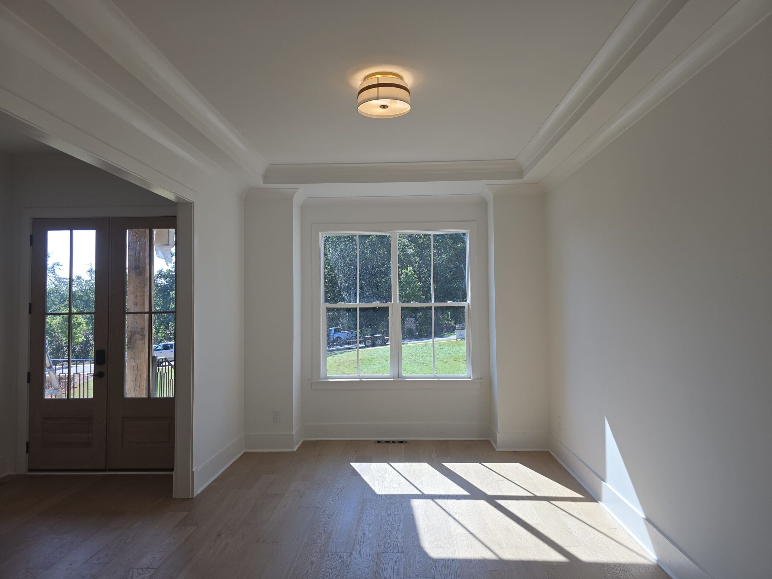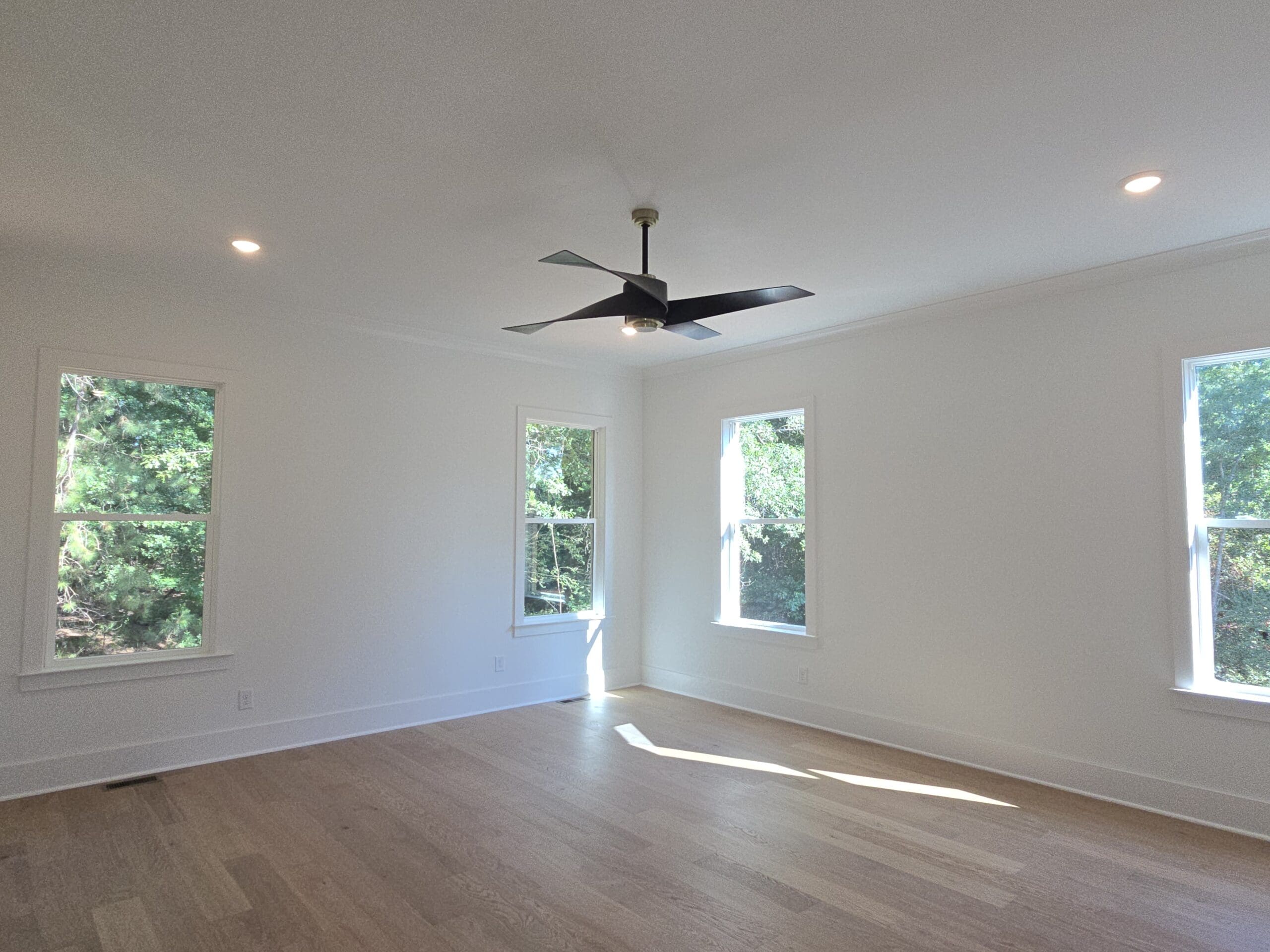 The 2nd home we completed in Spartan Manor is a new twist on a previous build, and the results are exceptional. This beautiful 4,206 square foot painted brick home sits on a 1.51-acre lot and is designed to impress, blending the latest design trends with thoughtful, luxurious finishes. A grand foyer leads into a spacious living room with a 10’ coffered ceiling, built in bookcases, and a high-end, modern cast stone fireplace. The large open layout of the kitchen and breakfast nook captivates and comforts with luxury and light. Whether an avid entertainer or home cooking enthusiast, this kitchen provides the perfect workspace featuring Thermador stainless steel appliances, including a 48” gas range, side-by-sde 30” refrigerator & 30” freezer, dishwasher, microdrawer, a huge walk-in pantry, a 9-foot island with outside cabinets, large sink & touchless faucet. Speaking of cabinets, narrow spice and pan pullout cabinets are provided on either side of the oven for extra convenience. This kitchen is a joy with plenty of natural light, modern pendants, can lighting, and under cabinet lighting. Large glass sliding doors provide easy access to the private covered back deck. The separate dining room is the prefect pl place for special mealtime gatherings. Continuing on the main floor, the primary suite is a luxurious retreat featuring the ideal amount of natural light and custom closets.  Get ready to conquer the day or enjoy downtime as you step into a huge 5’ x 10’ x 10’ beautifully tiled shower with gold double shower head and handheld system, relax in the 72” modern freestanding soaking tub, and look your best at the spacious double vanity. On the opposite side of the main floor comes an additional office or guest room with access to a full bath, complete with tiled shower. Entering through the 3-car garage and just off the kitchen an extra large mud room and separate spacious laundry room provide conveniences for daily living.