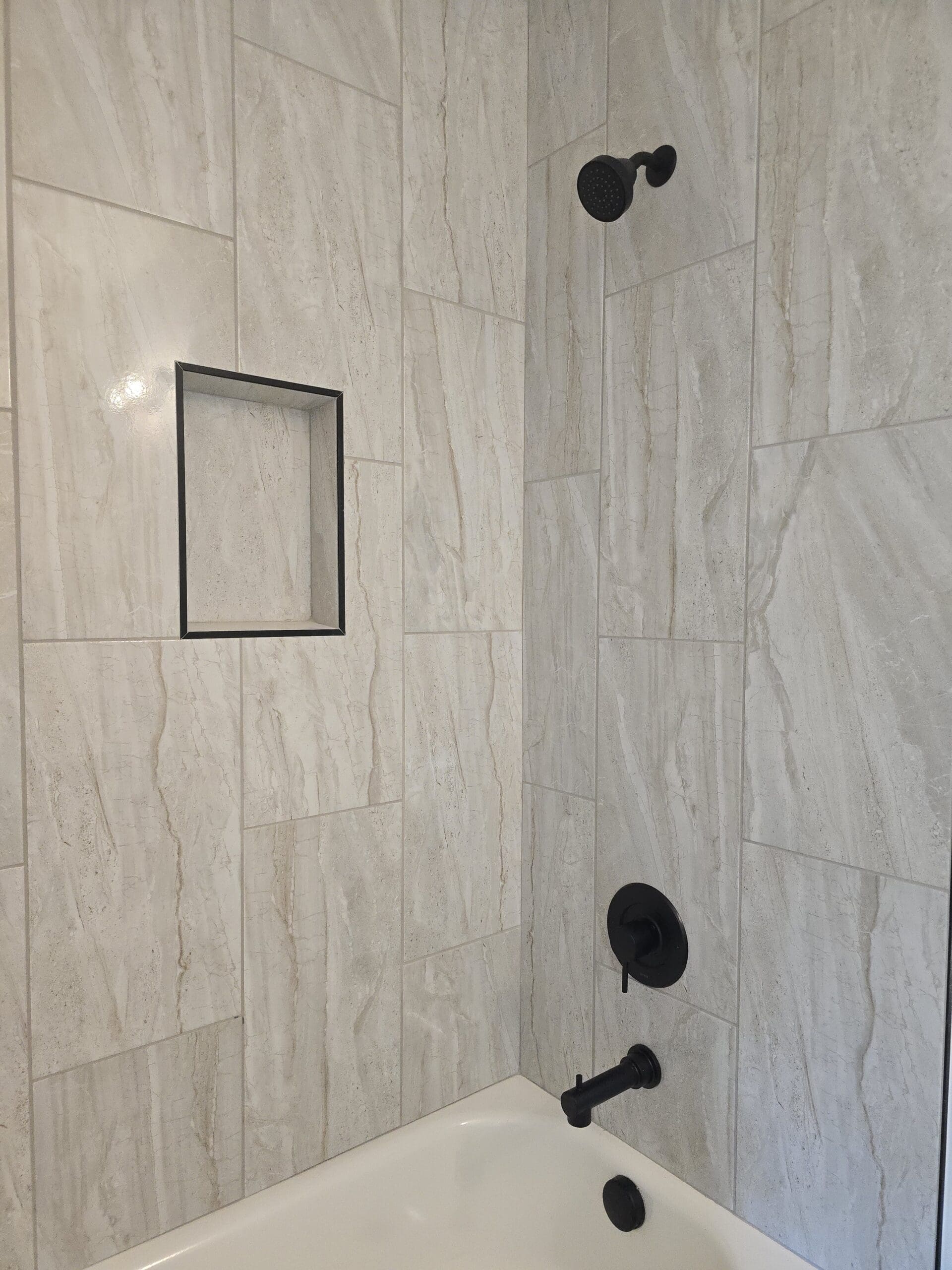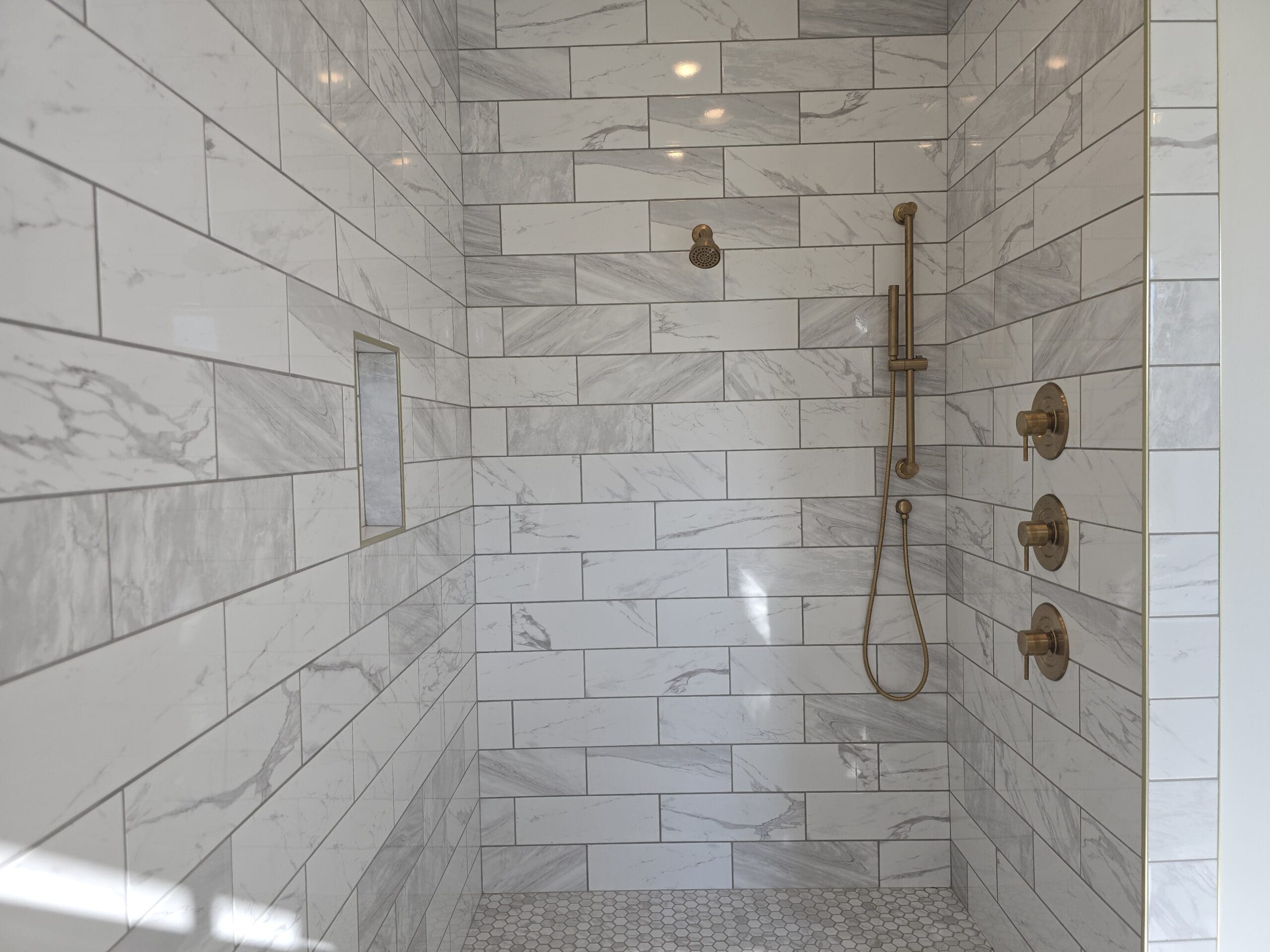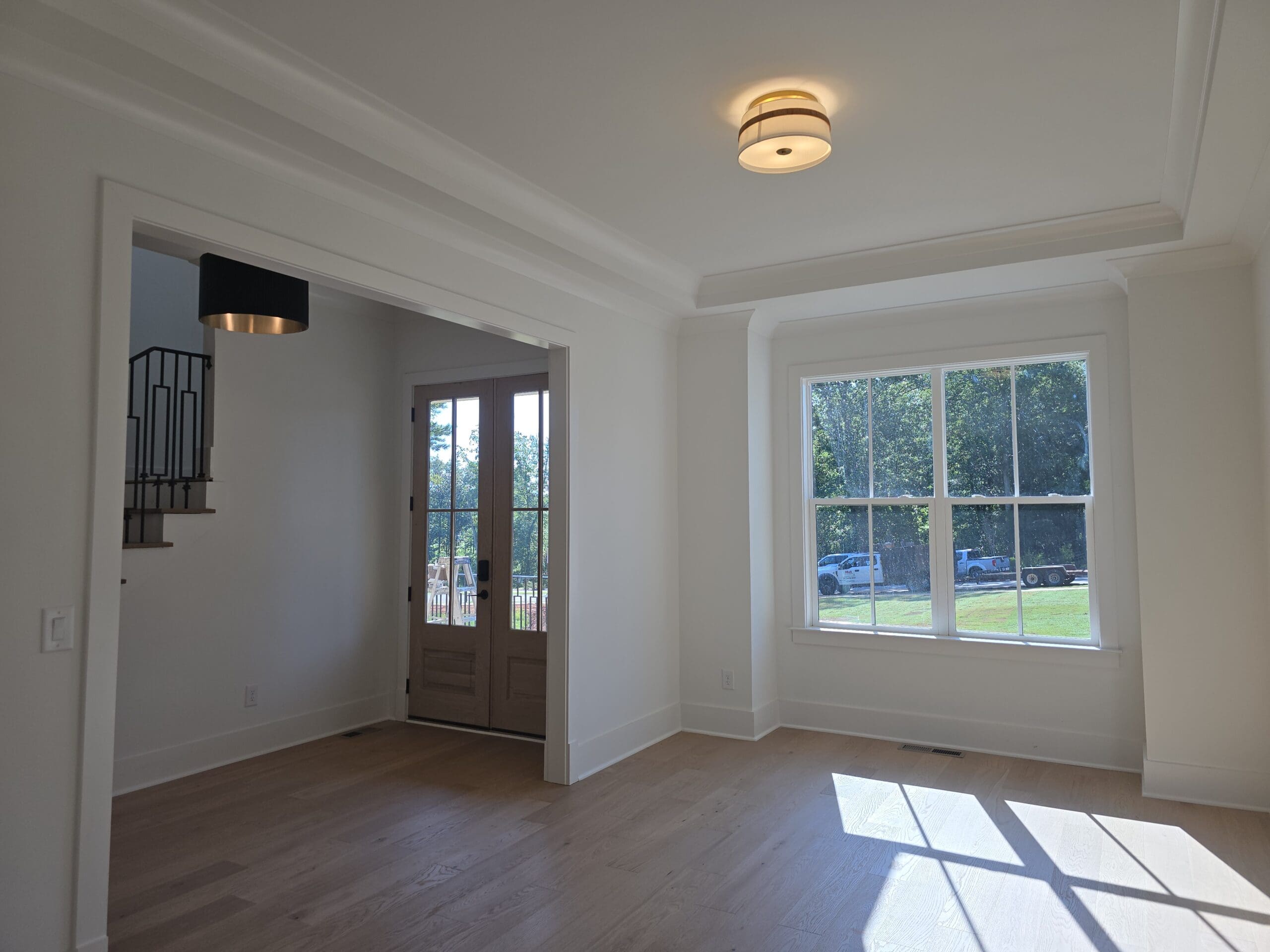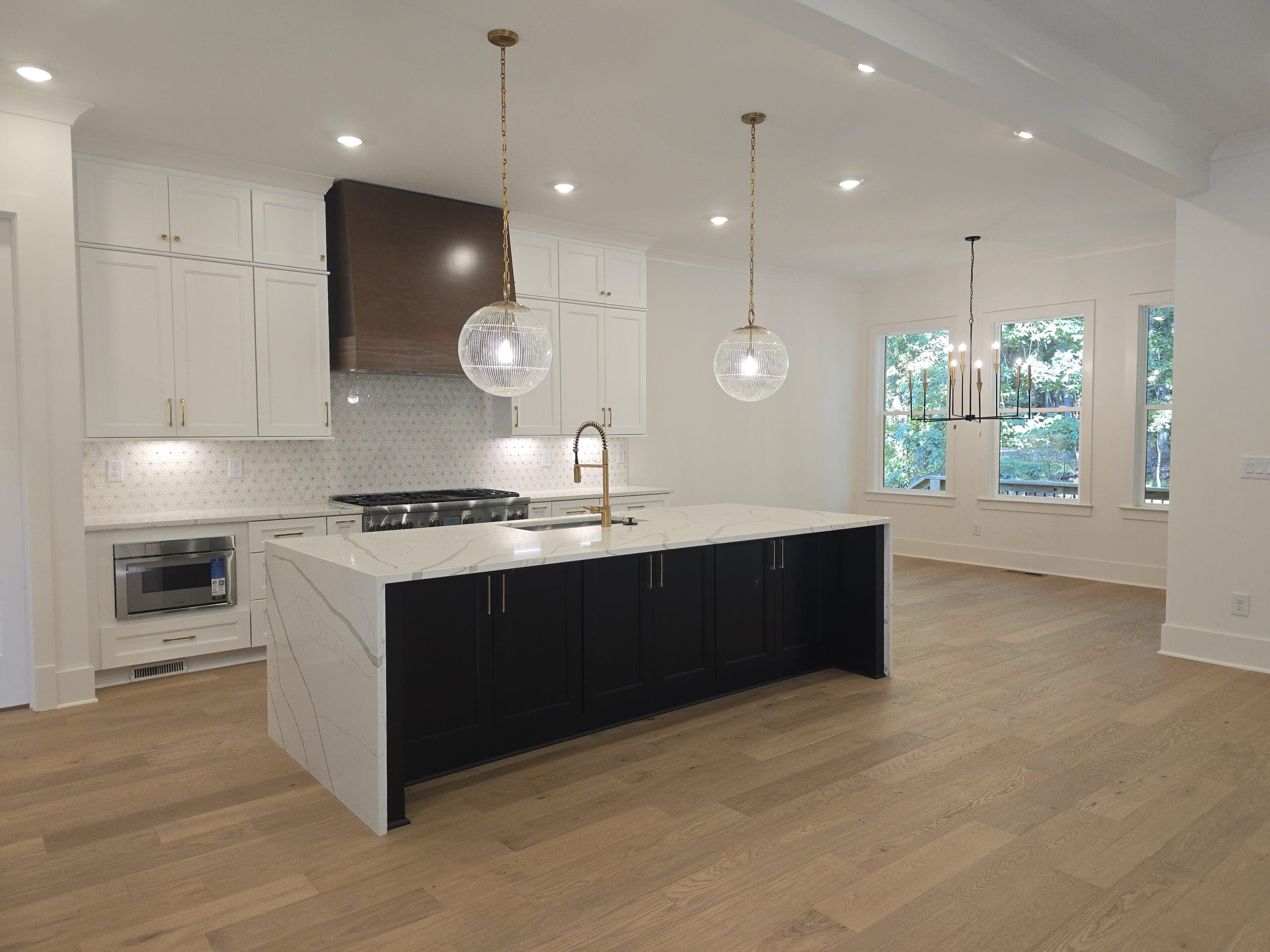 The 2nd home we completed in Spartan Manor is a new twist on a previous build, and the results are exceptional. This beautiful 4,206 square foot painted brick home sits on a 1.51-acre lot and is designed to impress, blending the latest design trends with thoughtful, luxurious finishes. A grand foyer leads into a spacious living room with a 10’ coffered ceiling, built in bookcases, and a high-end, modern cast stone fireplace. The large open layout of the kitchen and breakfast nook captivates and comforts with luxury and light. Whether an avid entertainer or home cooking enthusiast, this kitchen provides the perfect workspace featuring Thermador stainless steel appliances, including a 48” gas range, side-by-sde 30” refrigerator & 30” freezer, dishwasher, microdrawer, a huge walk-in pantry, a 9-foot island with outside cabinets, large sink & touchless faucet. Speaking of cabinets, narrow spice and pan pullout cabinets are provided on either side of the oven for extra convenience. This kitchen is a joy with plenty of natural light, modern pendants, can lighting, and under cabinet lighting. Large glass sliding doors provide easy access to the private covered back deck. The separate dining room is the prefect pl place for special mealtime gatherings. Continuing on the main floor, the primary suite is a luxurious retreat featuring the ideal amount of natural light and custom closets.  Get ready to conquer the day or enjoy downtime as you step into a huge 5’ x 10’ x 10’ beautifully tiled shower with gold double shower head and handheld system, relax in the 72” modern freestanding soaking tub, and look your best at the spacious double vanity. On the opposite side of the main floor comes an additional office or guest room with access to a full bath, complete with tiled shower. Entering through the 3-car garage and just off the kitchen an extra large mud room and separate spacious laundry room provide conveniences for daily living.